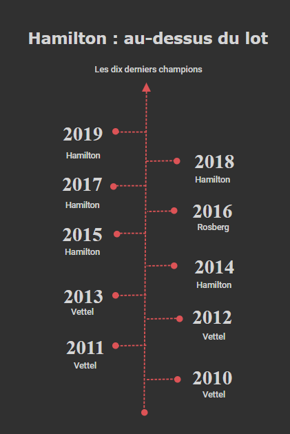 Le constat est simple, sur les dix dernières années, Lewis Hamilton a remporté cinq titres. Une hégémonie que seuls les pilotes allemands Sebastian Vettel et Nico Rosberg ont réussi partiellement à stopper. Son envie de tout écraser et telle qu’il n’hésitera pas à enterrer, un tant soit peu, une amitié de plus de quinze ans avec son ancien coéquipier Nico Rosberg. Le titre mondial était trop important pour lui.